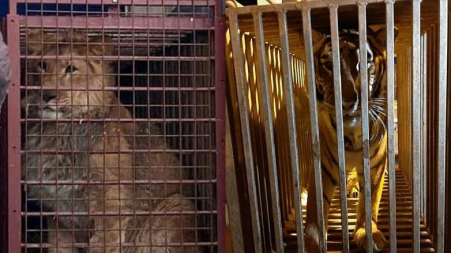 وأكدت منظمة "ستيختينغ لوو" على فيسبوك، أنها تسلمت مساء الجمعة "أَسَدين يبلغ الأول منهما ثلاثة أعوام ونصف والثاني عامًا ونصف، ونمر يبلغ ستة أشهر وأنثى نمر تبلغ خمسة أعوام".