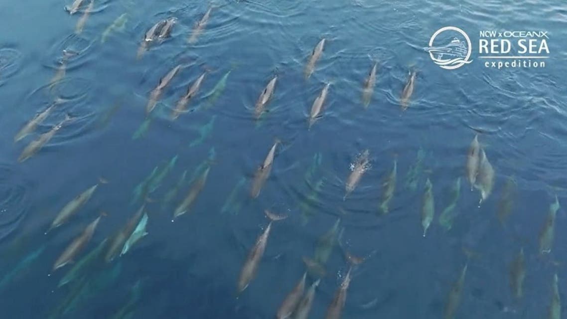 ونشر عبر حسابه على "تويتر"، مقطعا مصورا لعدد من الدلافين المرقطة ظهرت خلال رحلة استكشاف البحر الأحمر، وهي تسبح بجوار أمهاتها، مضيفاً: "أثناء الرحلة رأينا أكثر من 2000 منها تعيش غالباً في مجموعات تصل إلى 80 دلفيناً".