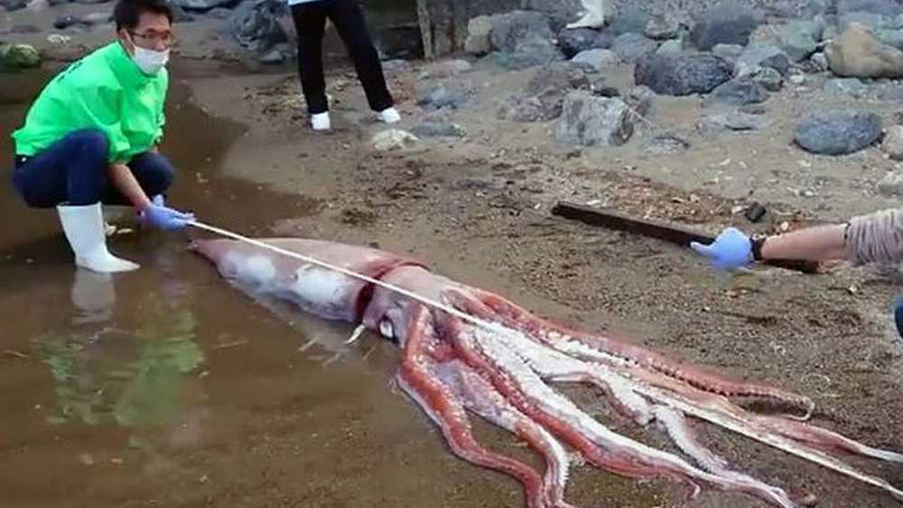 ويبلغ طول الحبّار الذي جرفته الأمواج لشاطئ أوجو 10 أقدام، وفقما ذكرت صحيفة "ماينيتشي" اليابانية نقلا عن بلدية فوكوي.