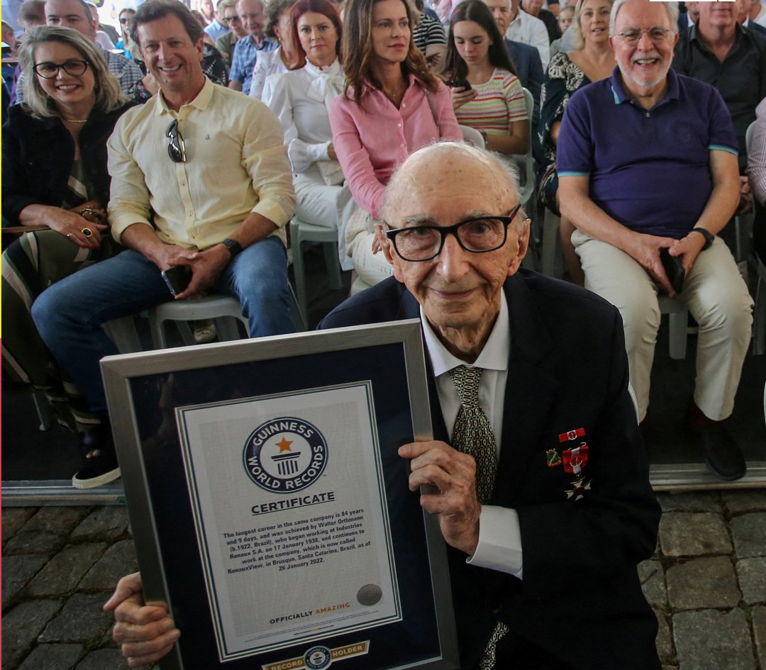 ويعمل المُسن "والتر أورثمان"، من مدينة بروسك البرازيلية، في شركة للأقمشة منذ 84 عاما وحتى الآن، وتدرج بالمناصب حتى استلم منصب مدير المبيعات.