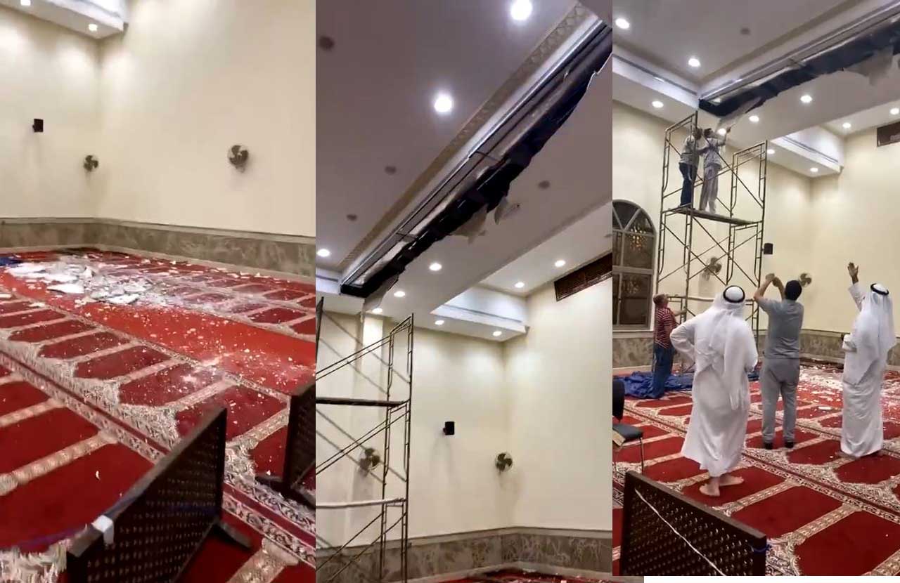 تداول رواد مواقع التواصل الاجتماعي في الكويت مقطع فيديو يظهر انهياراً جزئياً في سقف أحد المساجد خلال صلاة التراويح.