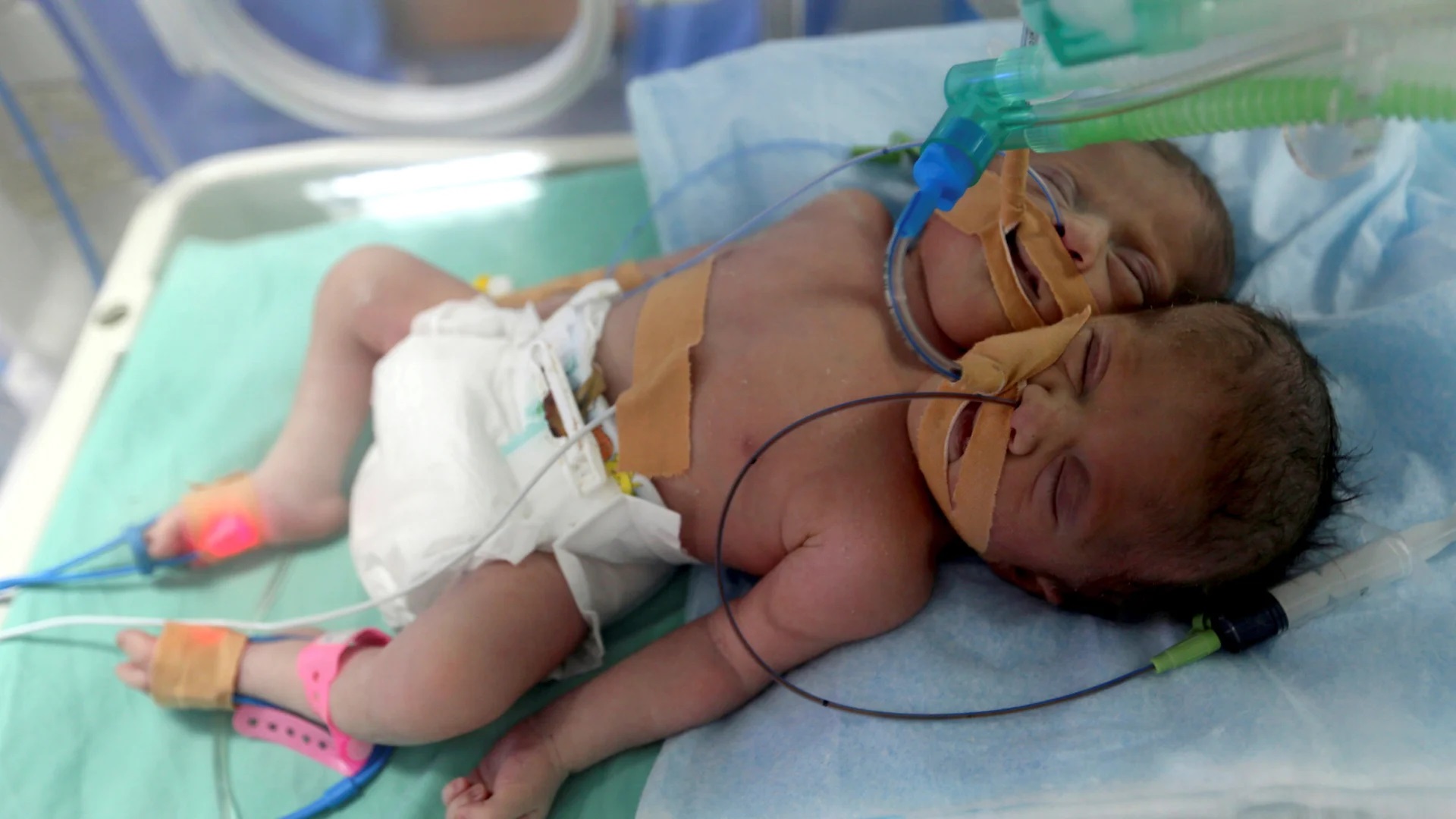 وأوضح الطبيب أن "الجزء العلوي من جسم الطفل مشترك. ولدى الطفل حبلين شوكيين ومعدة واحدة. وهي حالة معقدة للغاية"، مشيرا إلى أن الطفل يعاني من حالة نادرة تسمى "باراباغوس ديسيفالوس".