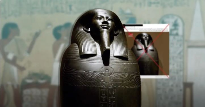 إلى ذلك، أظهرت الصورة المتداولة تابوتا حجريا للوزير "جيمنفيرباك" من الأسرة السادسة والعشرين التي حكمت مصر بين القرنين السادس والسابع قبل الميلاد. وهذا التابوت المنحوت معروض في المتحف المصري بمدينة تورينو الإيطالية.