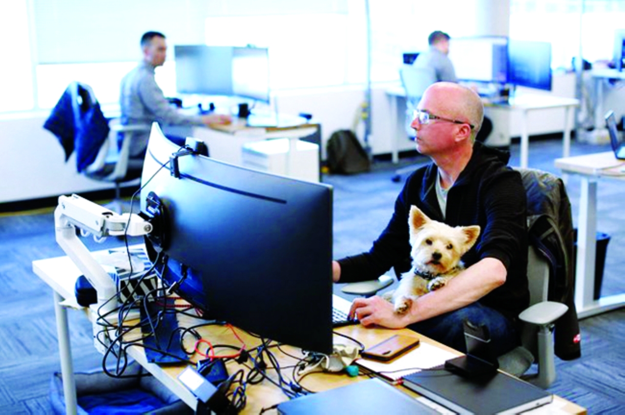 تسمح شركة «تانغستن كولابراتيف» الكندية لموظفيها الذين عملوا من منازلهم خلال جائحة كوفيد-19، بإحضار كلابهم وحيواناتهم الأليفة إلى مكاتبها.