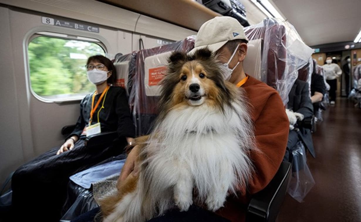 يُسمح عادةً باصطحاب الكلاب على متن قطارات "شينكانسن" السريعة، لكن يجب أن تظل محتجزة في قفص النقل ويجب ألا يتجاوز وزنها، بما يشمل القفص، عشرة كيلوغرامات.