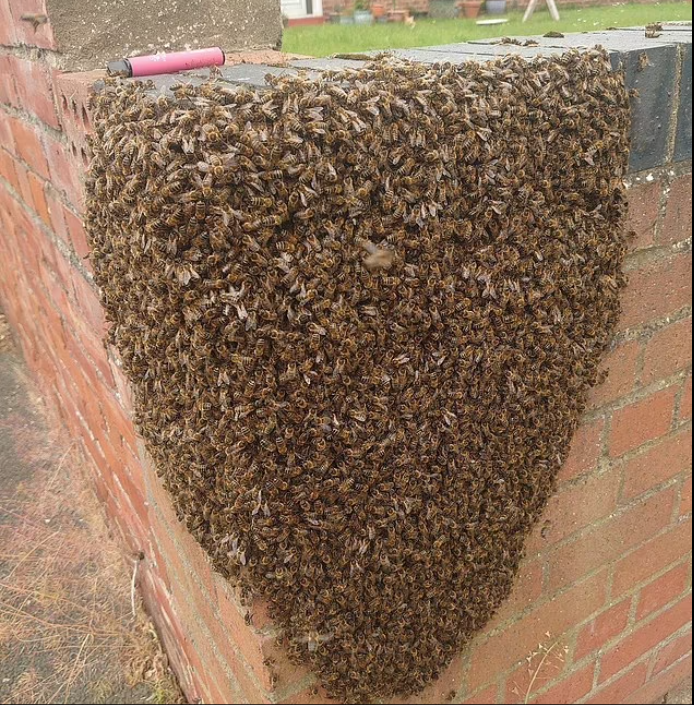 ووثقت مقاطع فيديو سرباً ضخماً من النحل على حائط، بينما كانت أعداد أخرى تطير بسرعة كبيرة، مخلفة دوياً في المكان.
