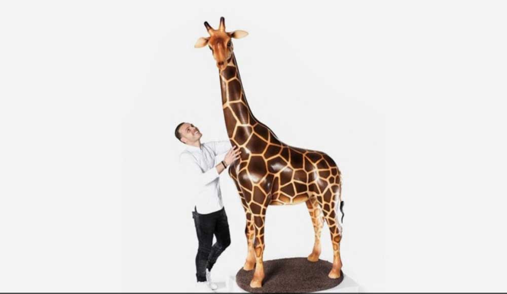 تعد الزرافة من أطول الحيوانات البرية بلا منازع، حيث يصل طولها إلى 5.5 أمتار، ولذلك، في مبارزة حقيقية، ووفقاً لتلك المقاييس، لا تملك زرافة بطول 2.5 مترين فرصة للفوز، لكن المقاييس تتغير عندما تكون الزرافة مصنوعة بيد فنان محترف، فكيف إذا كانت منحوتة من الشوكولاته بالكامل، لا يستطيع كثيرون تمييزها عن زرافة حقيقية!
