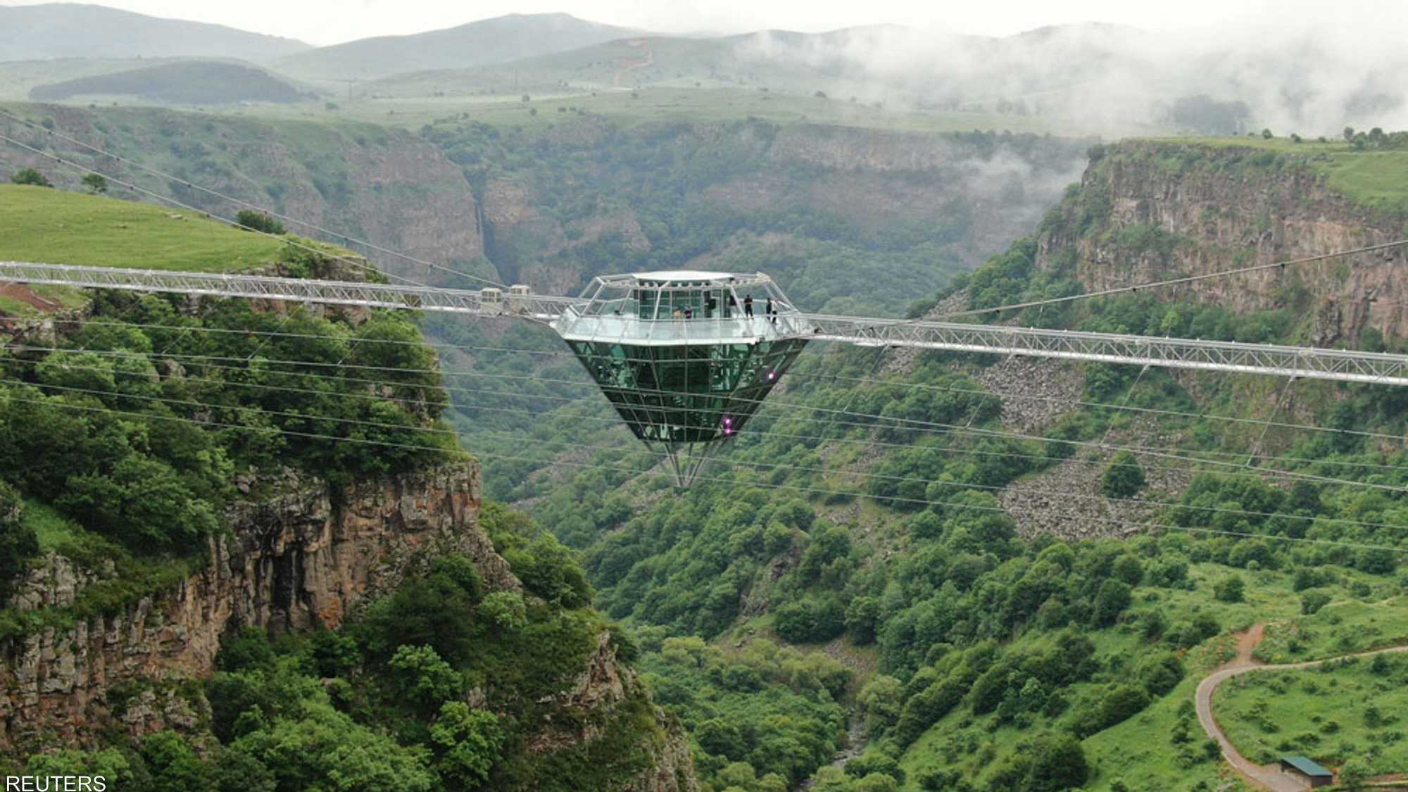 ويمتد الجسر الذي يقع على بعد ساعتين من العاصمة الجورجية تبليسي، على طول 240 مترا، بينما يبلغ ارتفاعه 280 مترا.