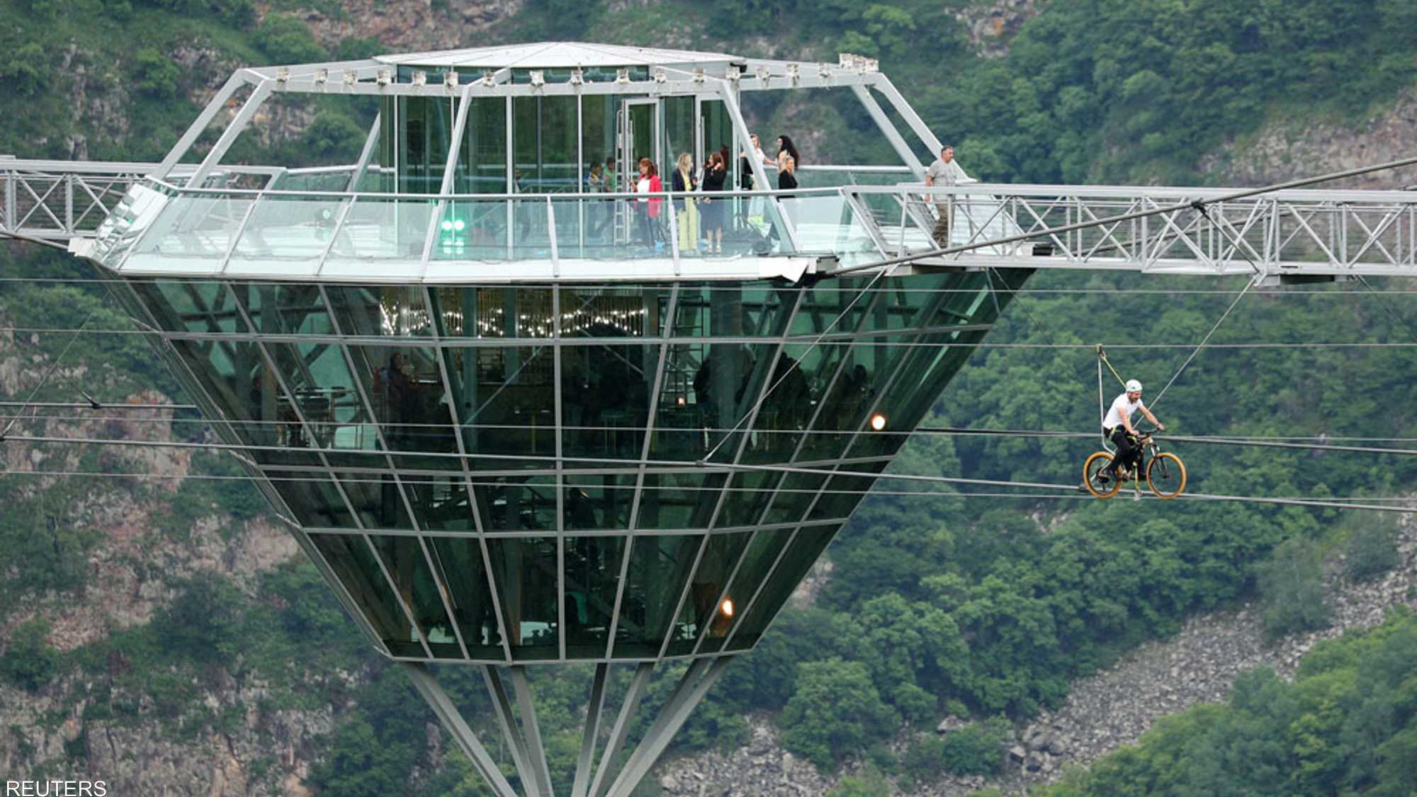 ويضم الجسر أيضا شبكة من الخطوط المعلقة التي تمكّن الزوار من تجربة قيادة الدراجات الهوائية عليها.