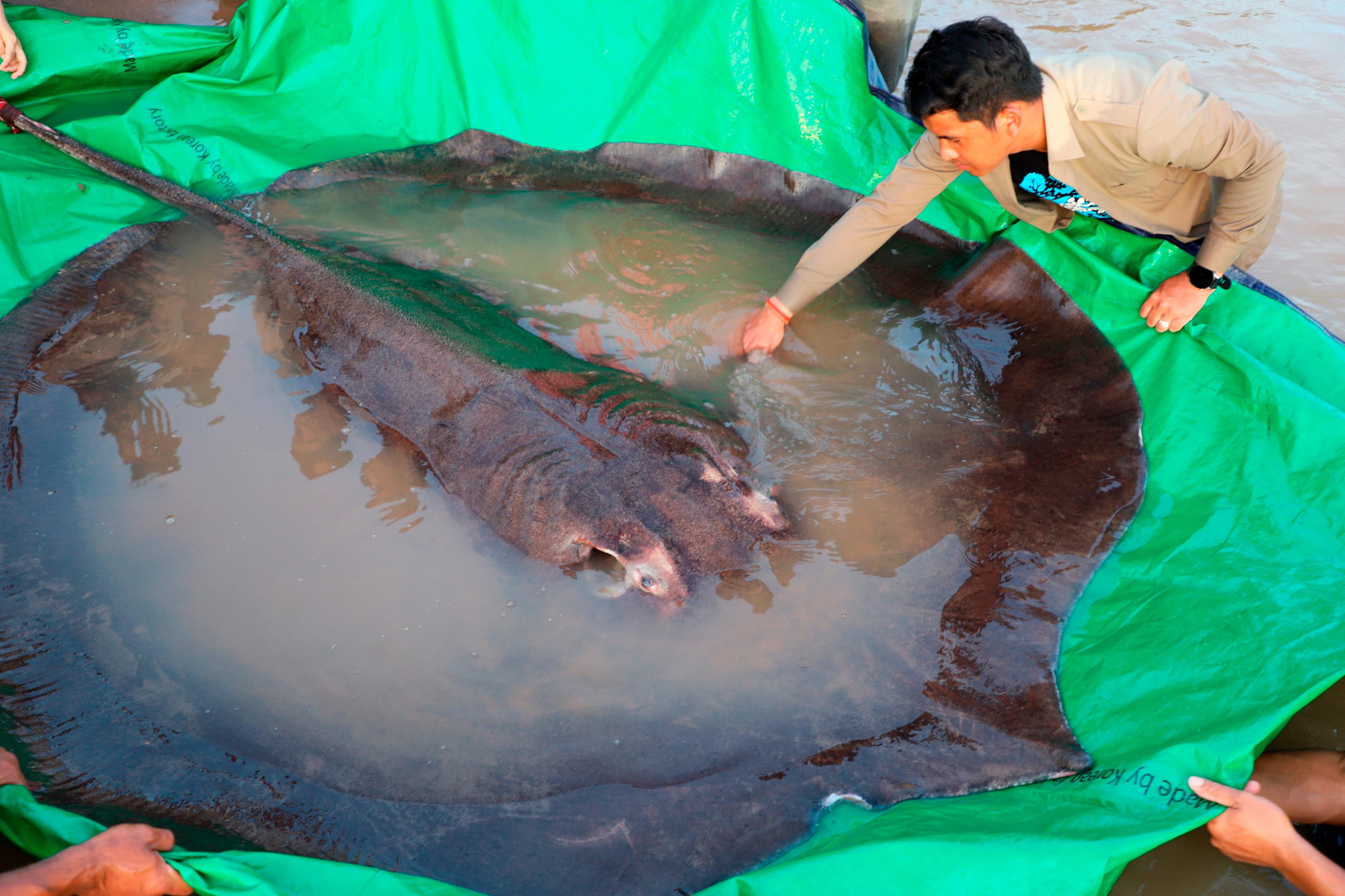 تمكّن كمبودي من اصطياد سمكة راي من نهر ميكونغ تزن 300 كيلوغرام وتُعتبر تالياً بحسب علماء أكبر سمكة مياه عذبة على الإطلاق تم اصطيادها حتى اليوم.
