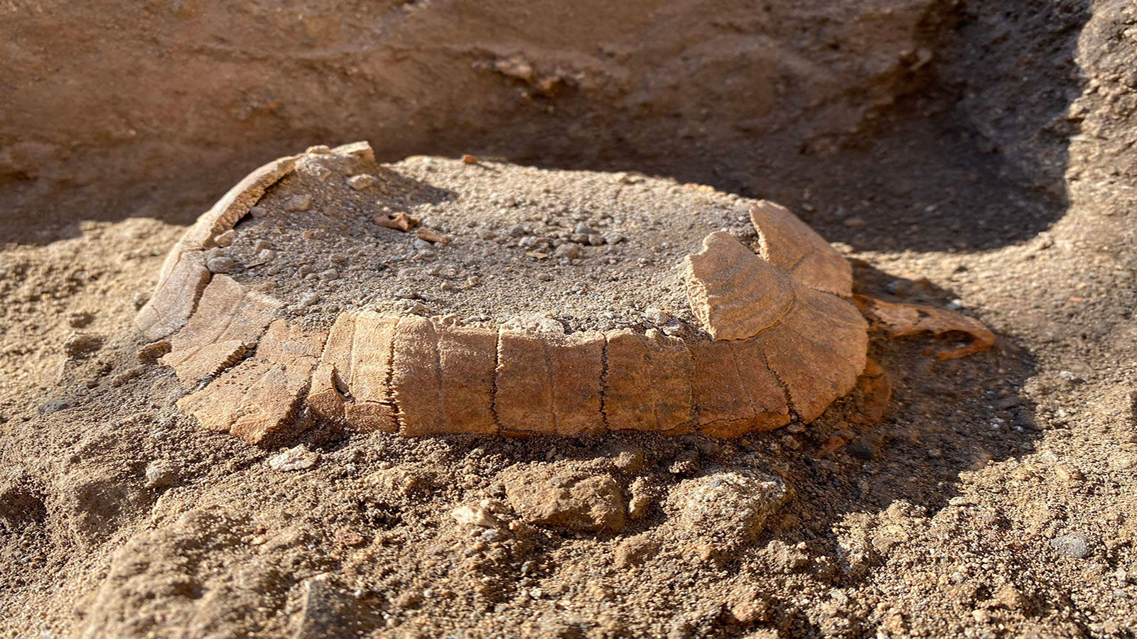 وأظهرت الصور رأس السلحفاة ودرعها. ووفقا لعلماء الآثار، فإن هذه ليست المرة الأولى التي يتم فيها الإعلان عن كشف مهم أثناء عمليات الحفر والتنقيب.