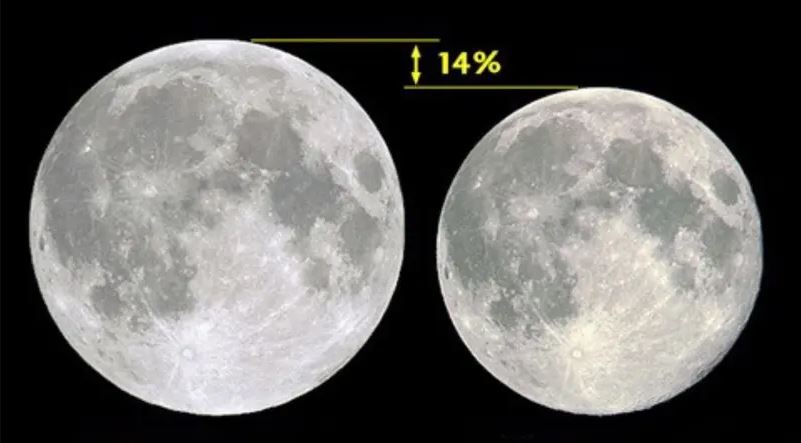 ونوه أبوزاهرة بأن القمر سيصل لحظة الاكتمال عند الساعة 09:37 مساءً بتوقيت مكة، ويكون قطع نصف مداره حول الأرض خلال الشهر، وذلك بعد تسع ساعات و38 دقيقة من وصوله إلى نقطة الحضيض، وهذا التزامن سيجعل حجمه الظاهري أكبر بنسبة 14%، وأكثر سطوعاً بنسبة 30% مقارنة بأصغر قمر بدر عندما يكون في (ألاوج) بعد نقطة له من الأرض.