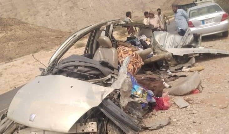 توفي 7 أشخاص من عائلة واحدة معظمهم أطفال، في حادث سير مروع، وقع أمس الأحد، في محافظة شبوة، شرقي اليمن، حيث انشطرت السيارة إلى نصفين.