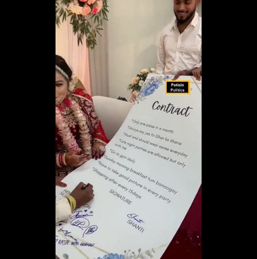وتم توقيع العقد بين العروسين شانتي ومنتو في ولاية آسام بحضور عدد من الشهود وفقا لصحيفة " ميرور".