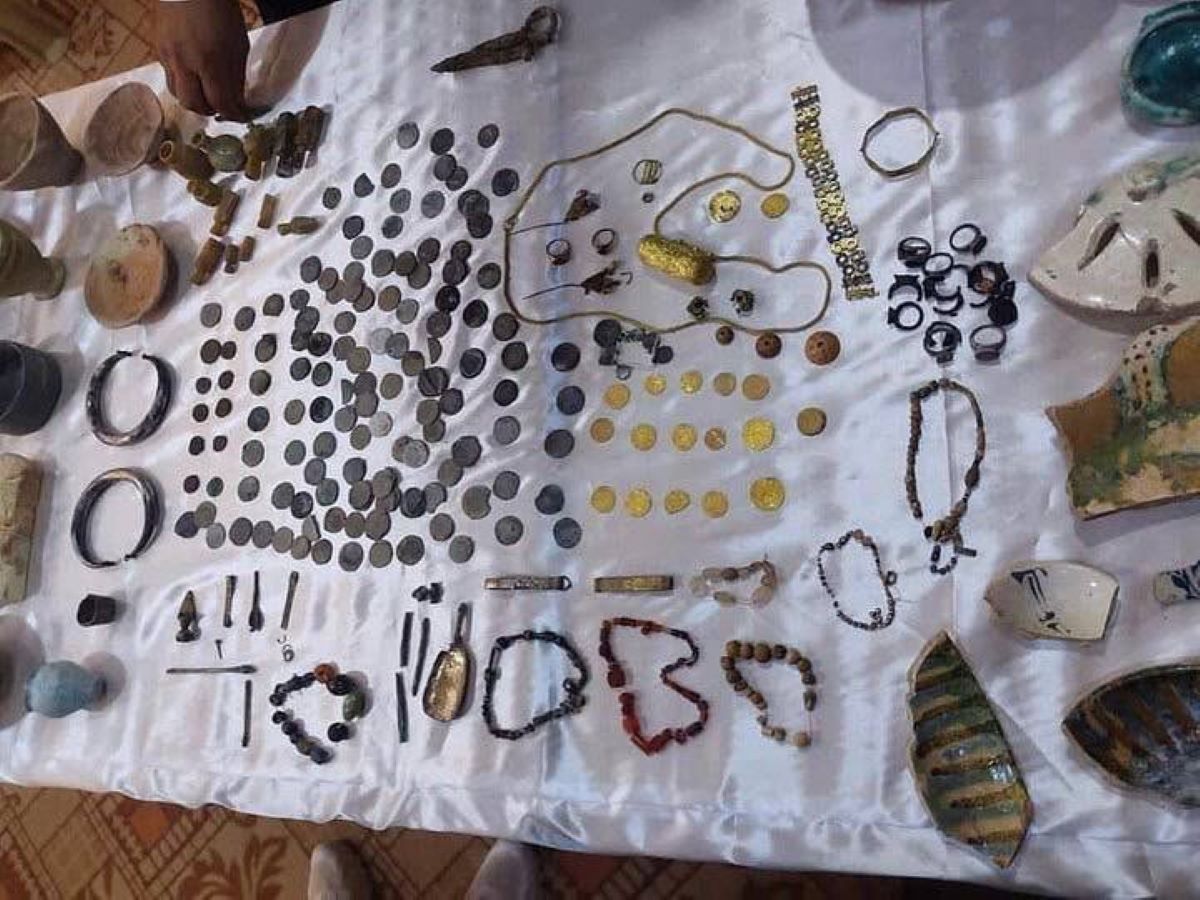 وقال إنه تم اكتشاف جرة من الفخار تضم في داخلها لقى أثرية نفيسة تتمثل في حلي وقلائد وخواتم وأقراط ودلايات ذهبية، وأحجار كريمة وثمانية عشر دينارا من الذهب الخالص تشير إلى الخلفاء المعتمد بالله والمقتدر والمستكفي بالله، فضلا عن أكثر من 100 درهم من الفضة".