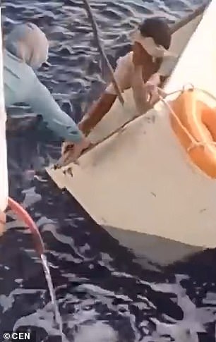 وتظهر لقطات التقطت في 11 أغسطس الماضي عندما تم إنقاذه وإرهاقه وسقوطه على أرضية سفينة صيد سورينامية، على بعد 450 كيلومتراً (280 ميلاً) من المكان الذي غرق فيه قاربه.