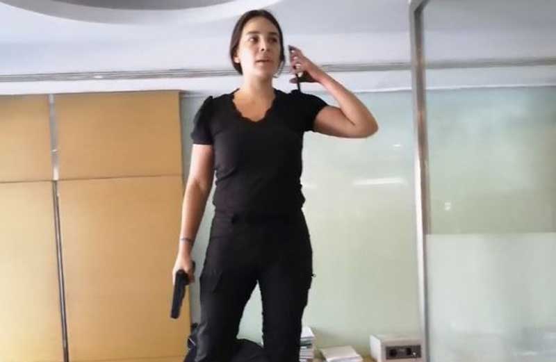وظهرت حافظ (28 عاماً) وهي مهندسة ديكور بصور ومقاطع فيديو وهي تقف على مكتب داخل المصرف وترفع مسدساً، قالت لاحقاً في مقابلة تلفزيونية مع قناة الجديد المحلية إنه من البلاستيك ومن ألعاب ابن شقيقتها.