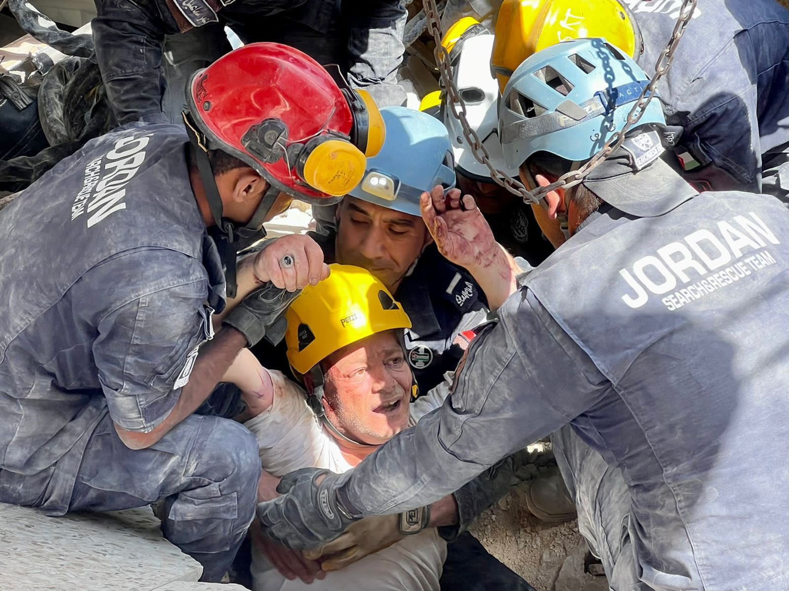 نشرت مديرية الأمن العام الأردنية صورة الناجي من عمارة اللويبدة المنهارة هاني رستم، بعد 20 ساعة من وجوده تحت الأنقاض.
