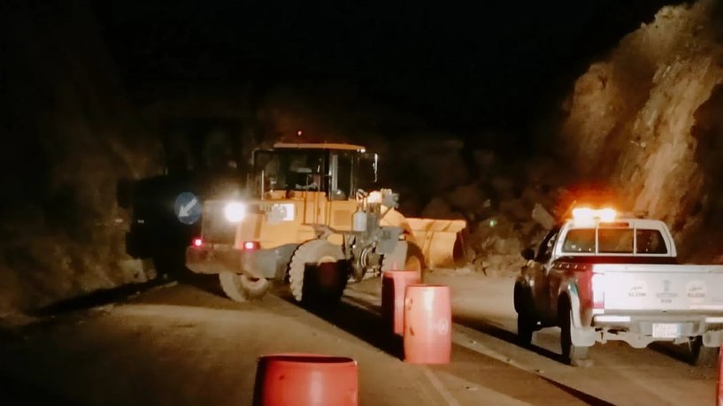 وكانت فِرق ومعدات النقل بالمنطقة قد باشرت الحالة فور وقوعها، ولا تزال تواصل جهودها لإزالة الانهيارات الضخمة في محاولة منها لإعادة فتح الطريق، وإبعاد مكامن الخطر.
