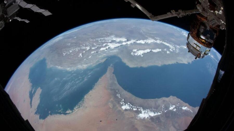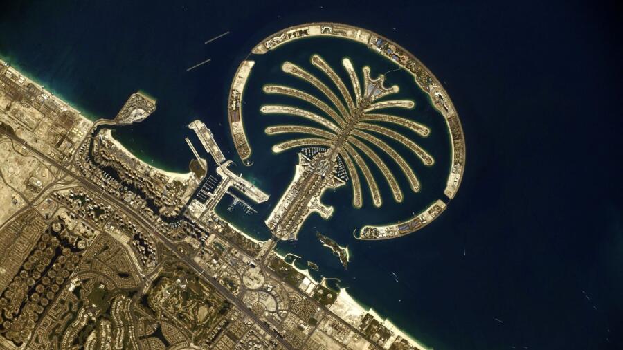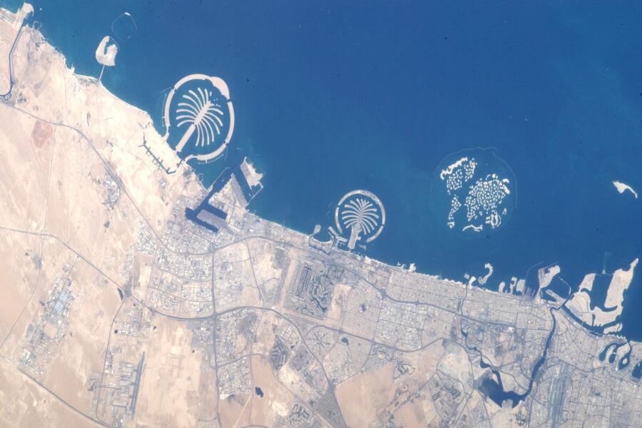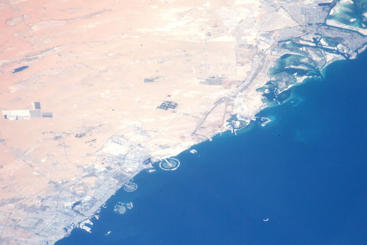 ظهر الخط الساحلي لدولة الإمارات بكل روعته في الصور التي التقطها رائد الفضاء الياباني واكاتا كيوشي، أخيراً، من محطة الفضاء الدولية، حيث بدت معالم جزر النخيل في دبي في غاية النقاوة.