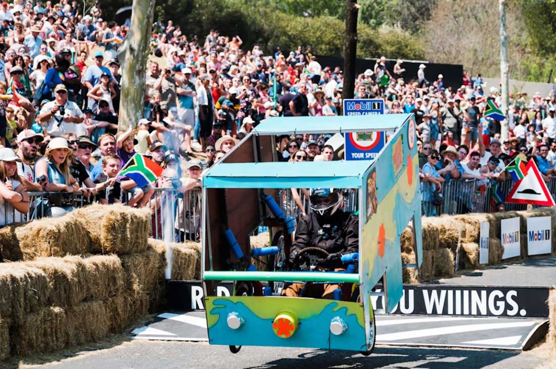تنافسَ نحو 50 سائقاً في سباق أقيم الأحد في مدينة كيب تاون بجنوب إفريقيا لمركبات محلية الصنع مثبتة على أربع عجلات لكنّها من دون محرّك، إذ تتحرك بدفع من القوة البشرية والجاذبية وحدهما.