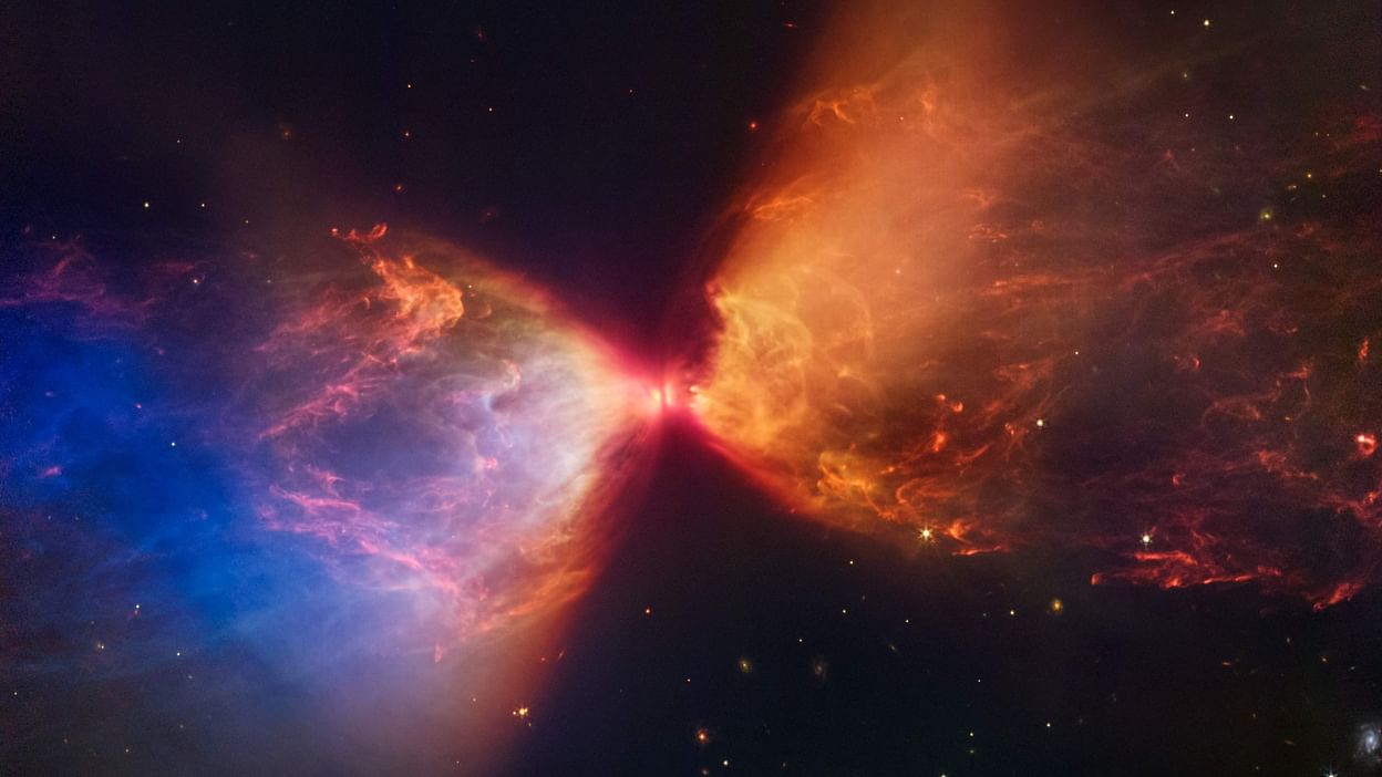 كشف تلسكوب جيمس ويب الفضائي الأربعاء عن صور جديدة مذهلة التقطها لسحابة ضخمة من الغبار على شكل ساعة رملية حول نجم في طور التكوّن.