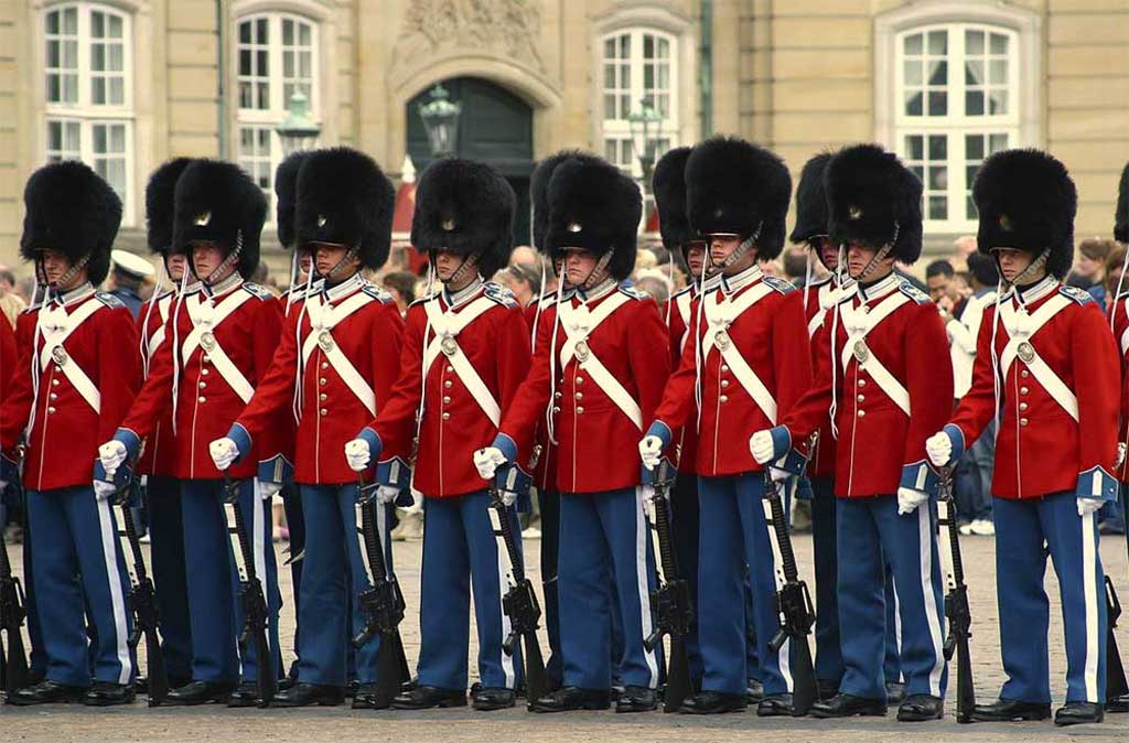 وتُخصص هذه القبعات المعروفة باسم "بير سكينز" (bearskins) لعناصر أفواج النخبة في الجيش الذين يعتمرونها أثناء تغيير الحرس أمام قصر باكنغهام، وأصبحت واحدة من أشهر رموز المملكة المتحدة.