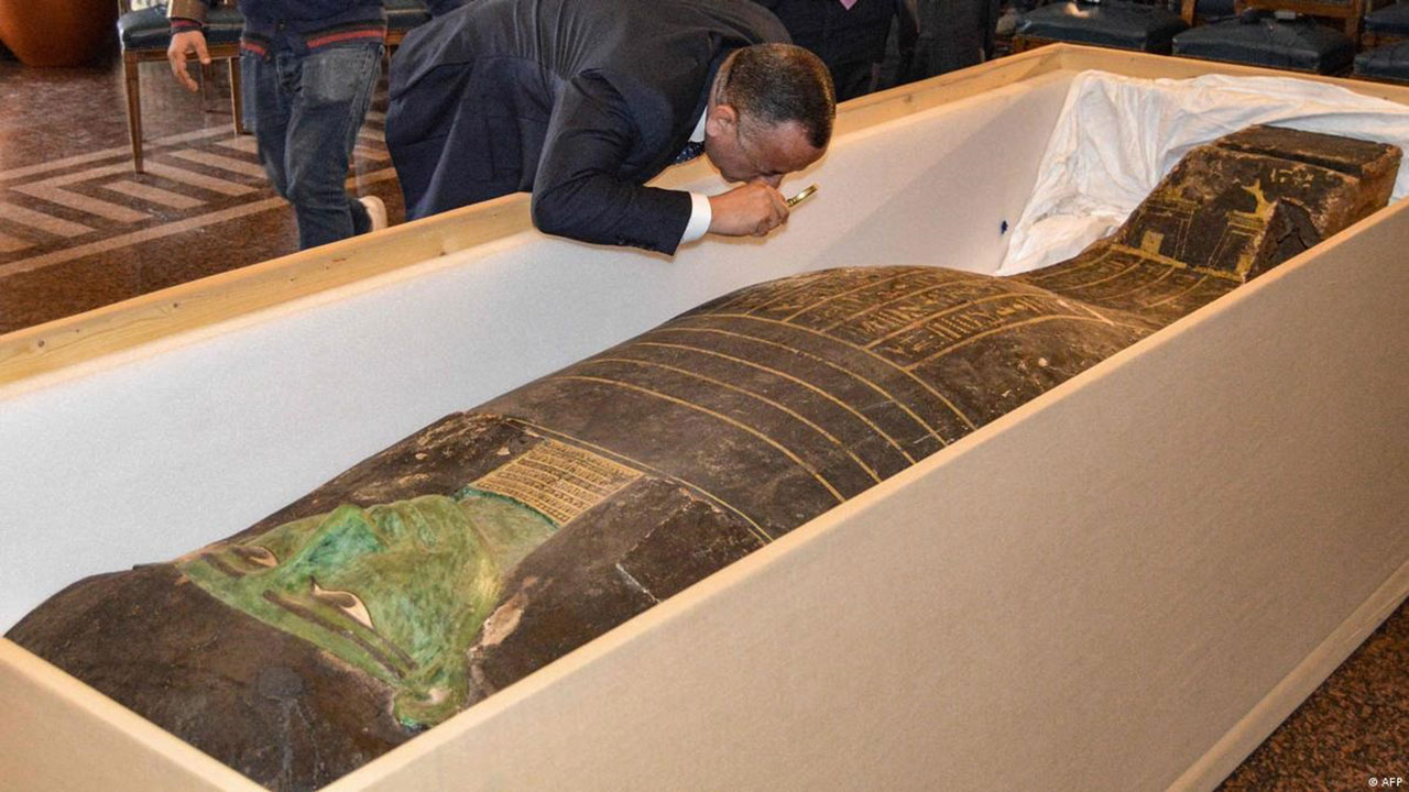 وخلال مؤتمر صحافي بمقر وزارة الخارجية المصرية بثه التلفزيون المصري، أوضح وزير السياحة والآثار المصري أحمد عيسى أن التابوت كان من بين 17 قطعة أثرية متنوعة استردت من الولايات المتحدة.