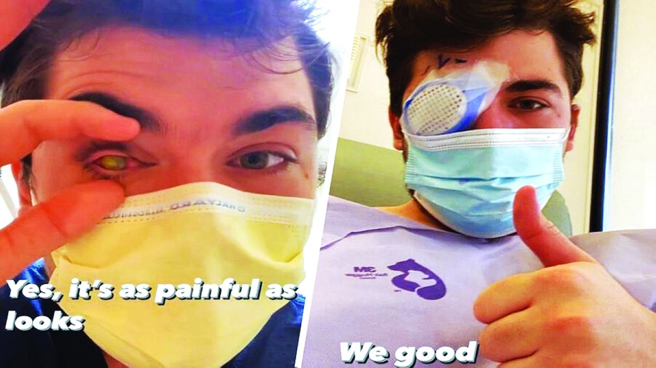 وقال له الطبيب بعد أن فحصه: أنت مصاب بالتهاب القرنية الشوكميبي، وأن الطفيليات آكلة اللحوم بدأت بأكل العين.