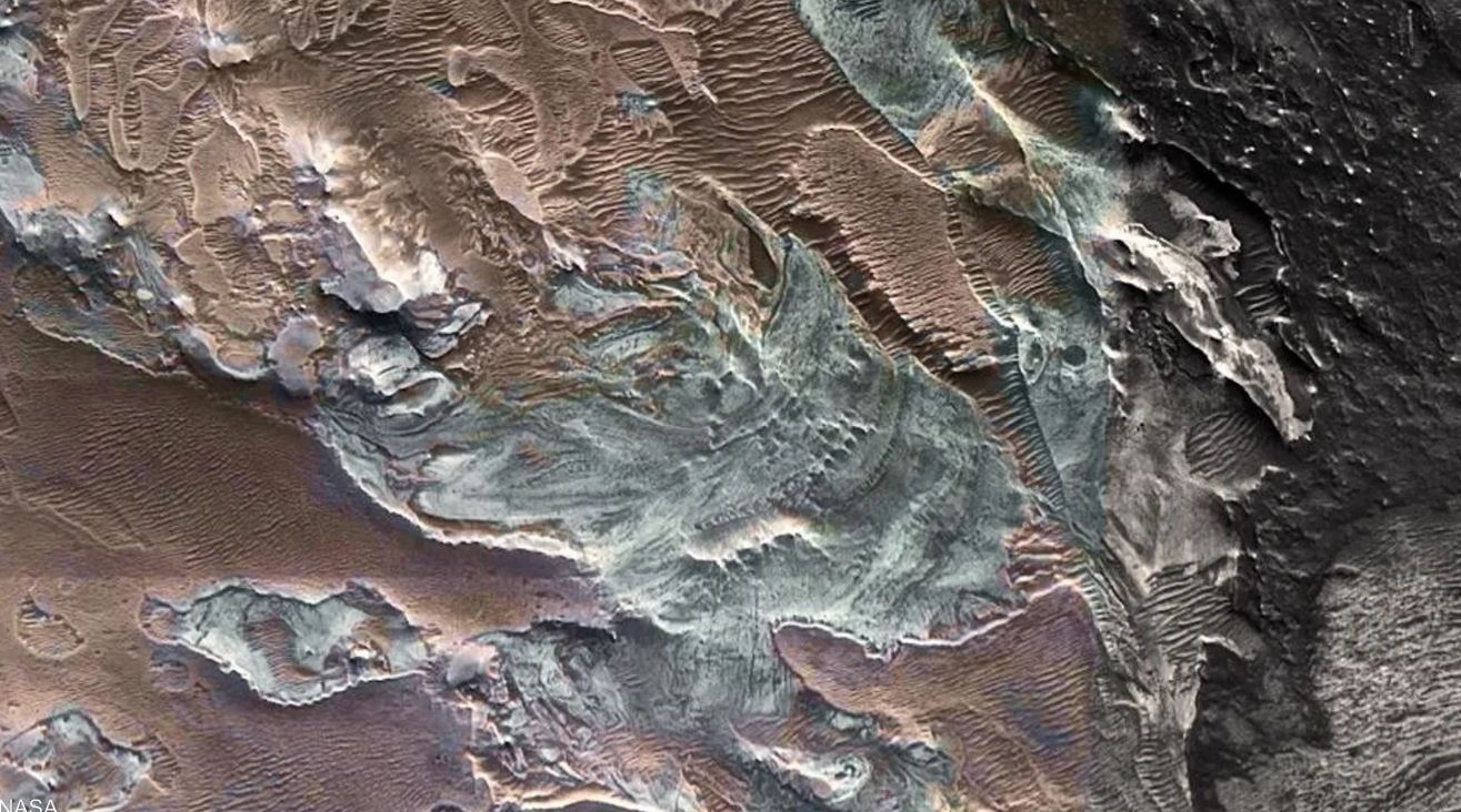 ورصد العلماء بقايا رواسب معدنية بالقرب من المنطقة الاستوائية للمريخ، تحتوي على أملاح كبريتات فاتحة اللون ولم تعد الكتلة الجليدية المكتشفة موجودة.