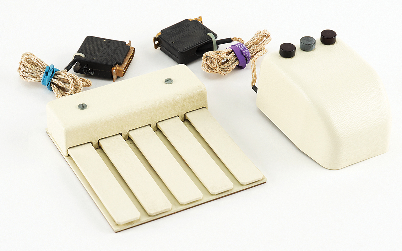 وتستخدم فأرة الكمبيوتر النادرة ذات الأزرار الثلاثة التي صممها انجيلبارت، قرصين معدنيين يتوافقان مع المحور «أكس» والمحور «واي» في الجزء السفلي لتحديد موقع المؤشر، بدلاً من الكرة أو الضوء البصري الذي تم استخدامه لاحقاً. وتحتوي مجموعة مفاتيح التشفير على خمسة مفاتيح، تتيح 31 تركيبة ضربة مفتاح للكتابة وإدخال الأوامر.