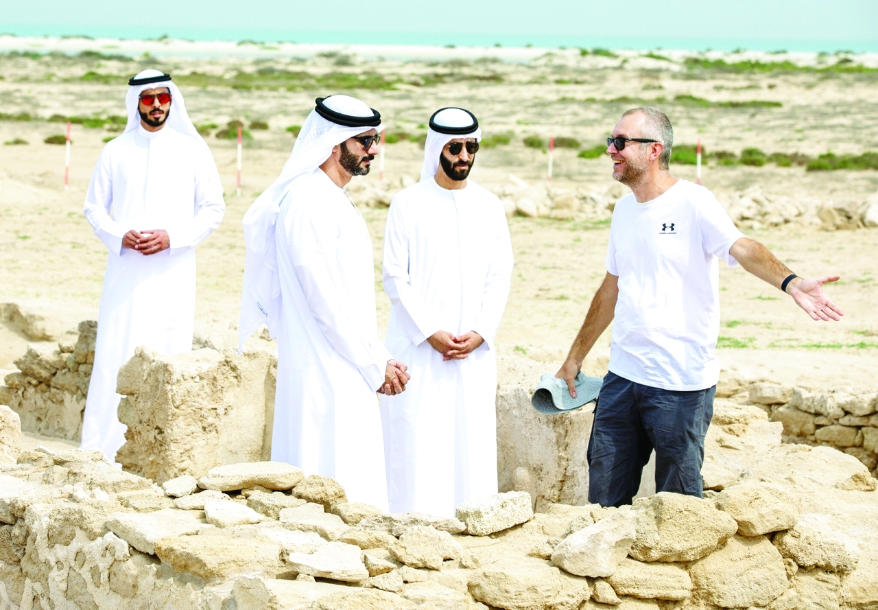وخلال جولته اطلع معاليه على المواقع الأثرية بالجزيرة، التي تضم منطقة أم القيوين القديمة، التي يعود تاريخها إلى ما بين القرن الثالث عشر إلى الخامس عشر الميلادي، وموقع دير السينية، الذي يعود تاريخه من أواخر القرن السادس إلى منتصف القرن الثامن الميلادي، وقد تم بناؤه من صخور الشاطئ المحلية، وتمت تغطية جدرانه بالجص الجيري.