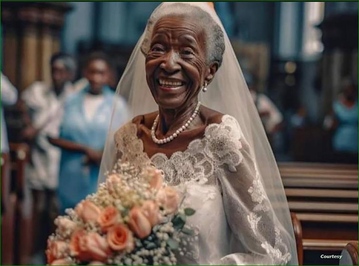 وتظهر في الصورة سيّدة طاعنة في السنّ ترتدي فستان زفافٍ، وجاء في التعليق المرافق "هذه السيدة تتزوج بعمر 103 سنوات".