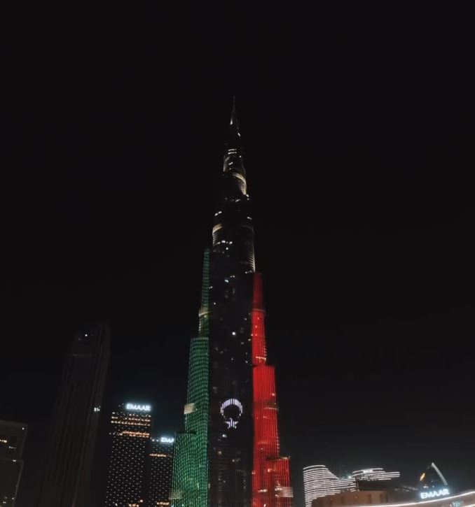 أضاء برج خليفة بألوان علم ليبيا تضامنا مع الشعب الليبي جراء الفيضانات التي اجتاحت شرق البلاد وخلفت خسائر بشرية ومادية كبيرة.