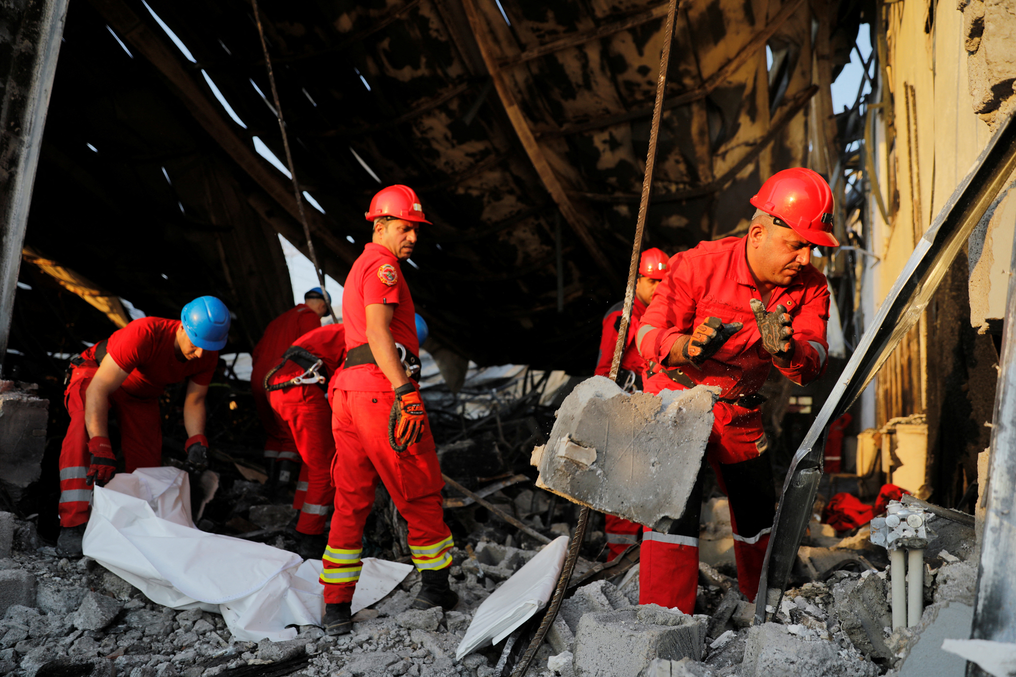 وأعلنت وزارة الداخلية العراقية، أن فرق الدفاع المدني استنفرت أقصى إمكاناتها من فرق الإطفاء والإنقاذ التخصصية وسارعت بإخراج وإنقاذ العائلات من داخل قاعة الأعراس المغلفة بألواح "الاليكوبوند" السريع الاشتعال.