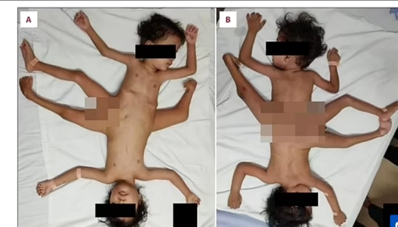 وأجرى فريق من الجراحين عملية شاقة لبتر ساقهما الثالثة وتثبيت عظام الورك والحوض حتى يتمكنا من الجلوس بشكل مستقيم. استغرقت عملية التئام الجروح نحو 3 أعوام، وخضعا خلالها لجلسات علاج فيزيائي مكثفة حتى تمكنا للمرة الأولى خلال الأسبوع الماضي من الجلوس بشكل عكسي، إذ يستلقي الأول ليجلس الثاني.