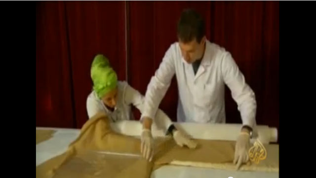 وقد تمت عملية الحفظ خلال عام كامل بوسائل لا تؤدي إلى تغيير أو إضافة في البردة كما يوضح تقرير بثته قناة الجزيرة في وقت سابق.