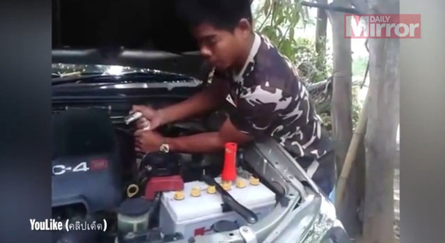 تحول هذا الرجل التايلندي إلى حديث الساعة عبر مواقع التواصل الاجتماعي بعد نشر صحيفة دايلي ميرور البريطانية مقطع فيديو يظهر شجاعته أثناء إخراجه أفعى ضخمة كانت مختبئة في محرك السيارة.