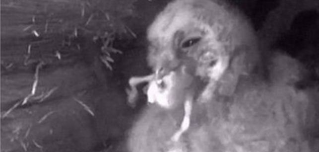 اللقطات المرعبة صورها البريطاني ديف كولاي من شيشاير، بينما كان يراقب البوم التي تعيش في الحديقة الخلفية لمنزله منذ شهر فبراير.