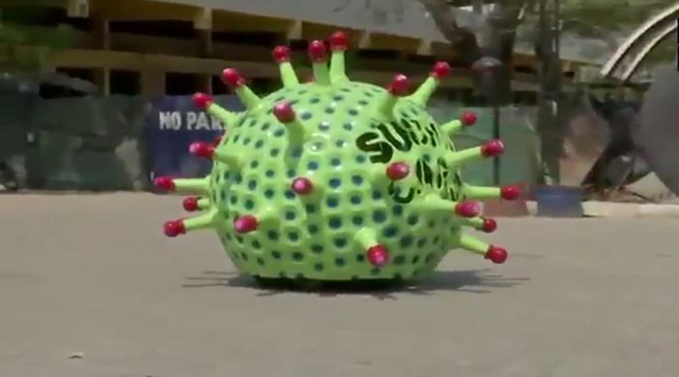 قامت سيارة في شكل الفيروس التاجي (كورونا) بدوريات في شوارع مدينة حيدر آباد الهندية لتوعية الناس بمخاطر الفيروس وتذكيرهم بالبقاء في منازلهم، والالتزام بالحجر الصحي الذاتي.