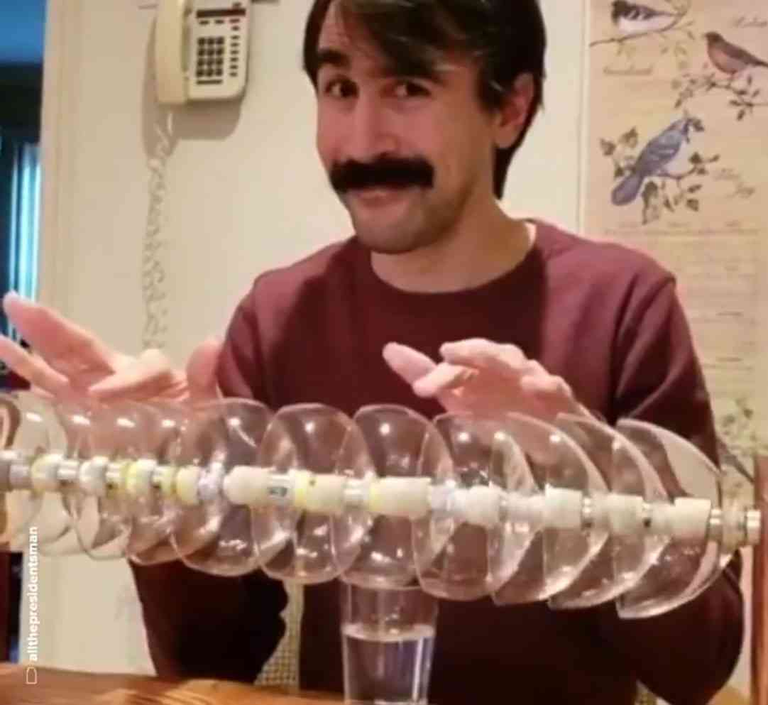 هذه واحد من صنع الموسيقار براين بونيلي، الذي يخرج منها أعذب الألحان بمجرد خمسه لأصابع يديه في الماء ثم تمريرها على الكؤوس الدائرة.