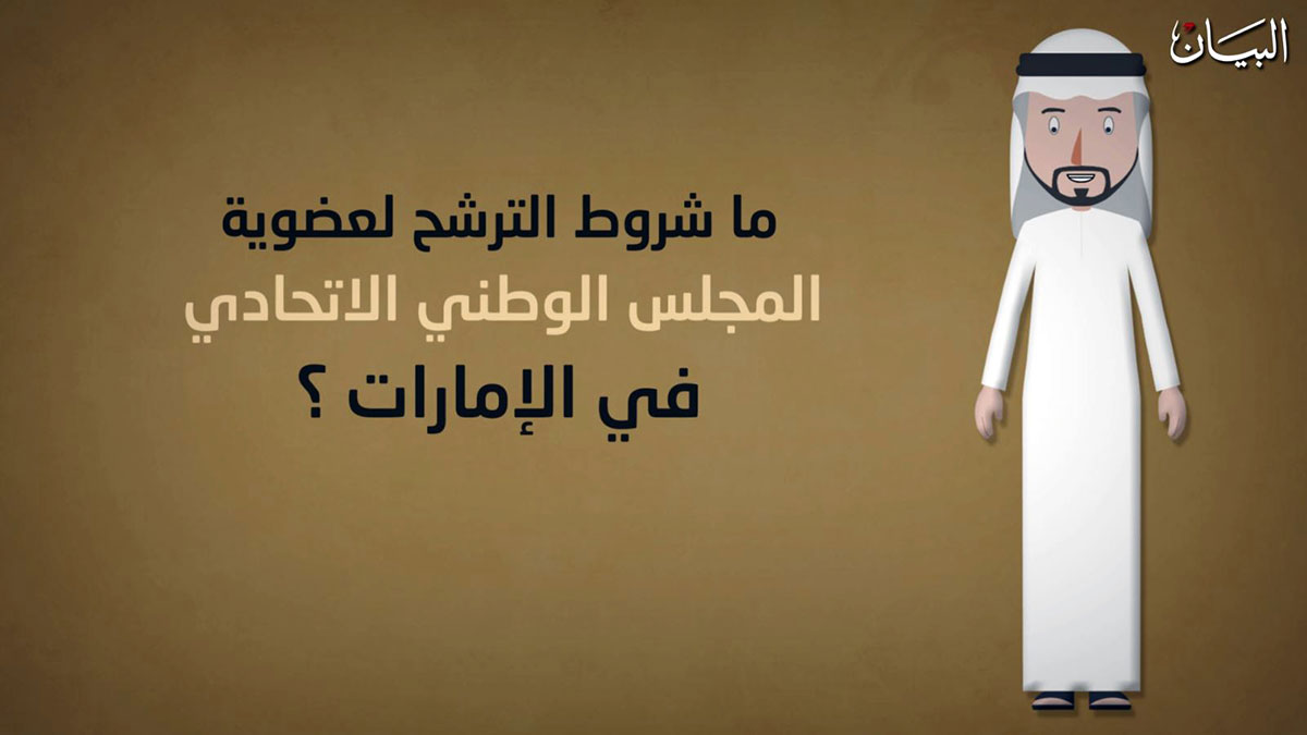 بالفيديو.. شروط الترشح لعضوية المجلس الوطني الاتحادي 2019 البيان أعلن عدد من المواطنين الإماراتيين اعتزامه ترشيح نفسه لانتخابات المجلس الوطني الاتحادي 2019 بدورته الرابعة. تعرفوا على شروط الترشح في فيديو "أنيميشن" من "شوف البيان".