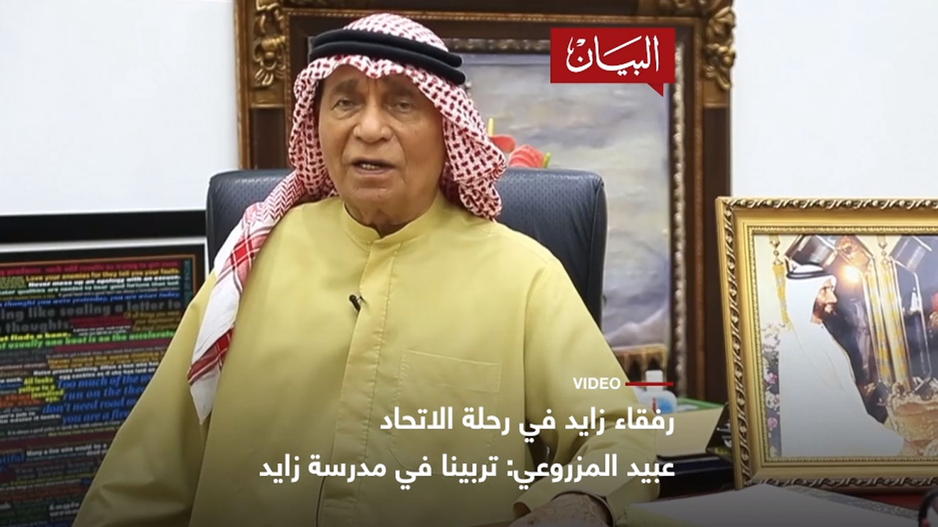 عبيد المزروعي ... تربينا في مدرسة زايد دبي – البيان "الشيخ زايد كان إعلاميا وقياديا من الدرجة الأولى، وقد استفدت منه الكثير خلال رحلاتي معه، فقد شحنني فكرياً بالمستوى الذي كنت أصبو إليه، فقد كان مدرسة". عبيد المزروعي يستحضر مواقف وذكريات يرويها ضمن سلسلة "رفقاء زايد في مسيرة الاتحاد".