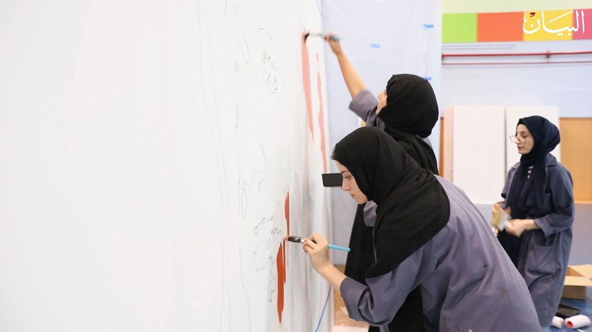 إنها جدارية "عام زايد" التي يبلغ طولها 140 متراً، رسمت بأيادي 22 طالبة من كلية الفنون.