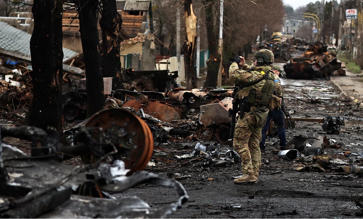دفعت لقطات وصور القتلى المدنيين في أنحاء البلدة دولا غربية للمطالبة بمعاقبة أولئك المسؤولين عن جرائم الحرب في أوكرانيا.
