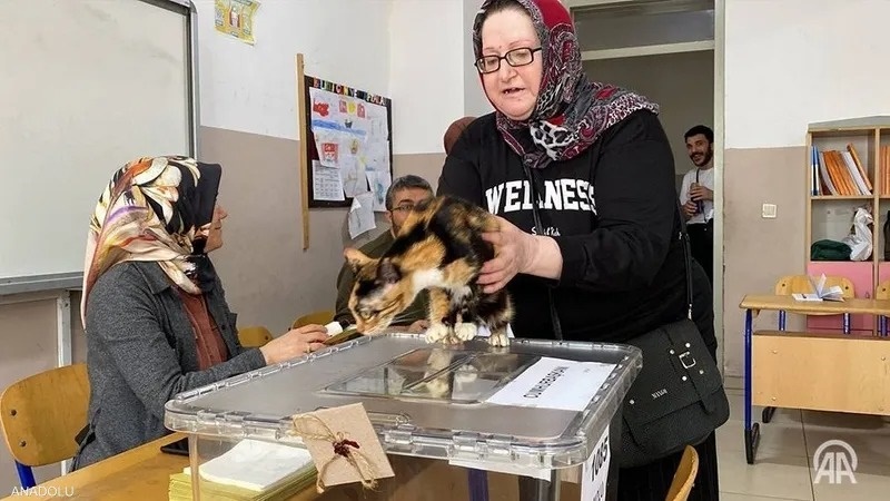 ونشرت وكالة «الأناضول» التركية للأنباء صورة المرأة التي أدلت بصوتها، فيما كانت قطتها تقف على صندوق الاقتراع، وكأنها تترقب هي الأخرى نتائج الانتخابات الرئاسية، مما جعل البعض يصفها بـ«القطة الناخبة».
