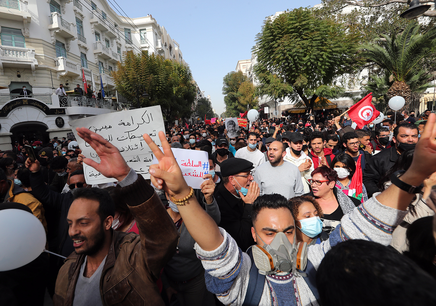 في المقابل، اختارت حركة النهضة الإخوانية، التصعيد في مواجهة مؤسسة الرئاسة، وقال زعيمها راشد الغنوشي، الذي يتولى رئاسة البرلمان، في تصريحات صحافية، إنّ «الدستور يفرض على رئيس الجمهوريّة، تحديد موعد لقبول أداء اليمين الدّستوريّة للوزراء الحاصلين على تصويت الأغلبية في البرلمان»، وتابع أن «استقالة الحكومة مستبعدة، وليست في مصلحة البلاد في شيء، خاصة ونحن في قلب أزمة صحية واقتصادية غير مسبوقة»، وفق تعبيره.