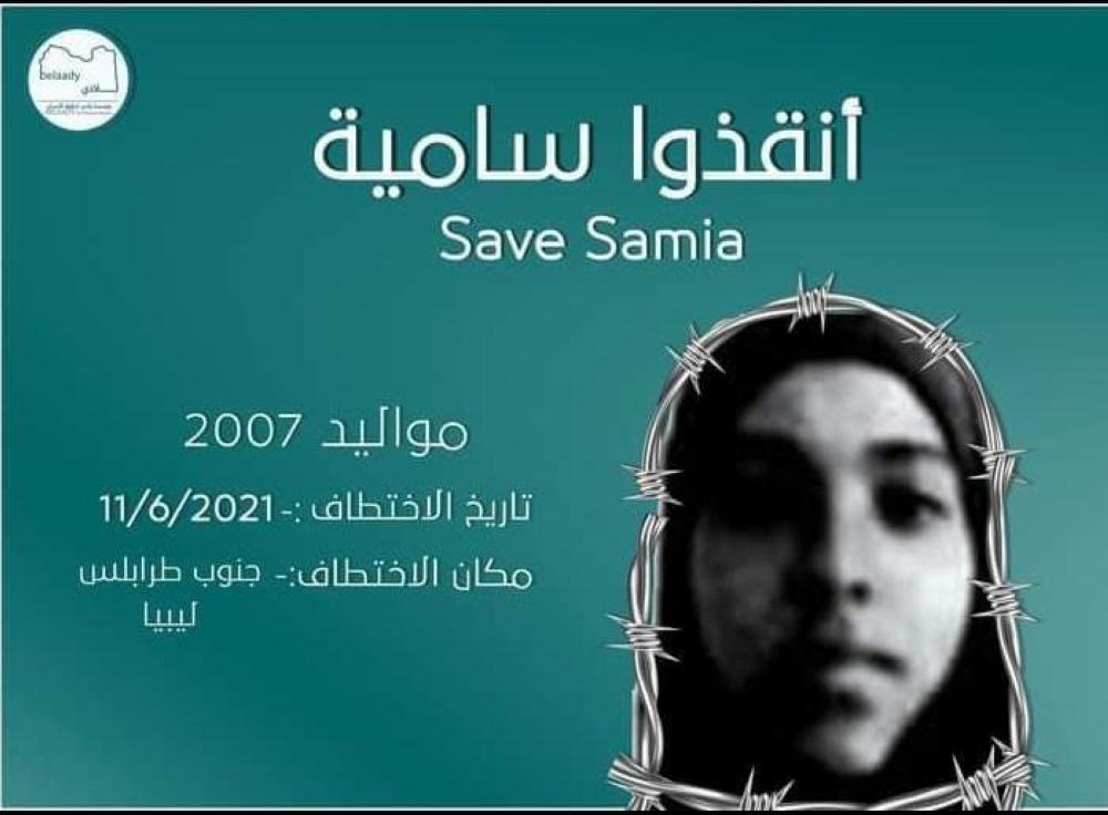 وقالت منظمة «رصد الجرائم الليبية» و42 منظمة أخرى في بيان مشترك أن سامية الفتاة القاصر التي تعيش في ليبيا منذ مطلع العام 2017 مع والدتها كانت من ضمن المسجلين والمشمولين بحماية مفوضية الأمم المتحدة لشؤون اللاجئين،وإن عملية الاختطاف تم تنفيذها عندما كانت مع والدتها تحاولان بيع بعض المنتجات، وأن أن شهود عيان أكدوا أن مسلحين يرتدون زيًا عسكريًا اقتادوها في سيارة لمكان مجهول، فيما قدمت الأم شكوى في أحد مراكز الأمن بالقرب من مكان الحادثة.
