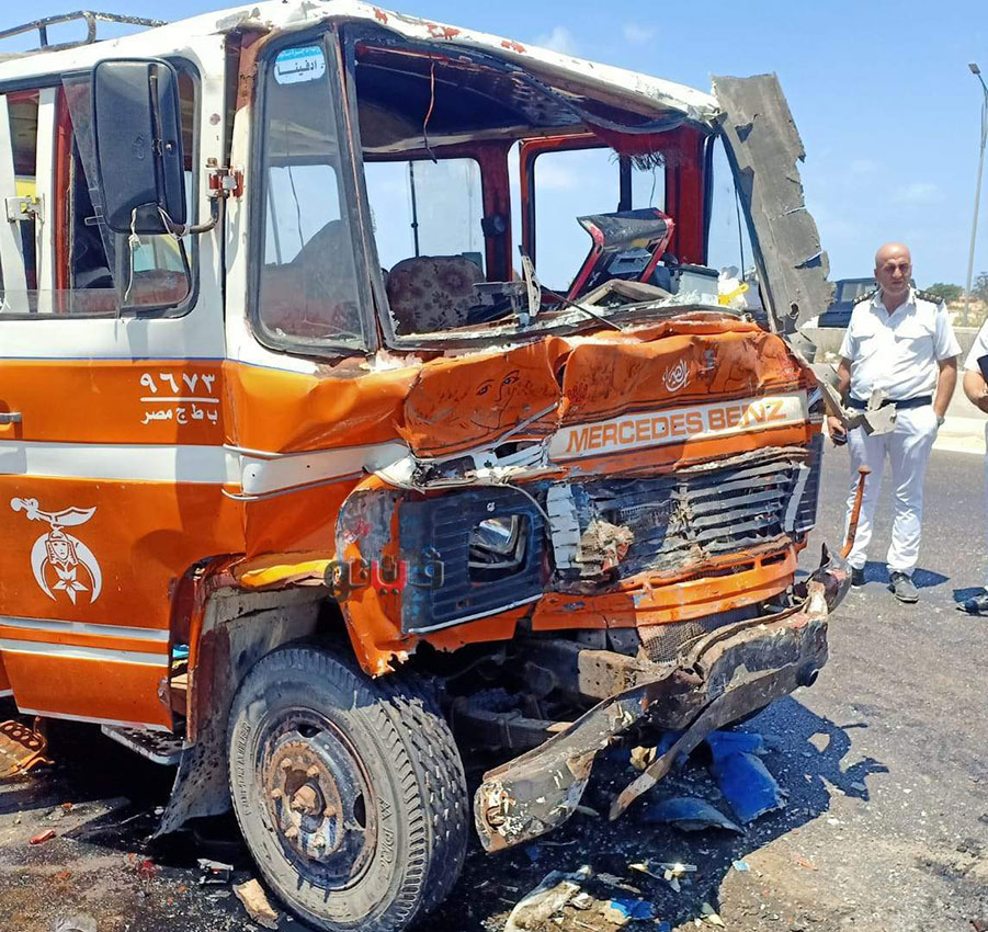 ووقع الحادث الذي نجم عنه إصابة 36 شخصا بين كسور وجروح بين حافلة رحلات وحافلة نقل عام على طريق استاد برج العرب، غربي مدينة الإسكندرية.