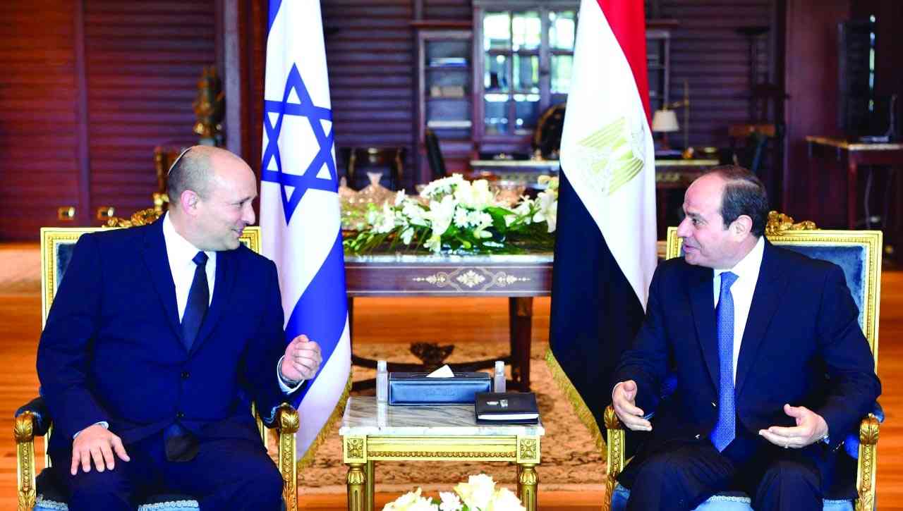 جاء ذلك خلال استقبال السيسي لرئيس الوزراء الإسرائيلي، نفتالي بينيت، بمدينة شرم الشيخ المصرية. وبحث اللقاء «مستجدات الأوضاع على الساحتين الإقليمية والدولية، خاصة فيما يتعلق بالقضية الفلسطينية».